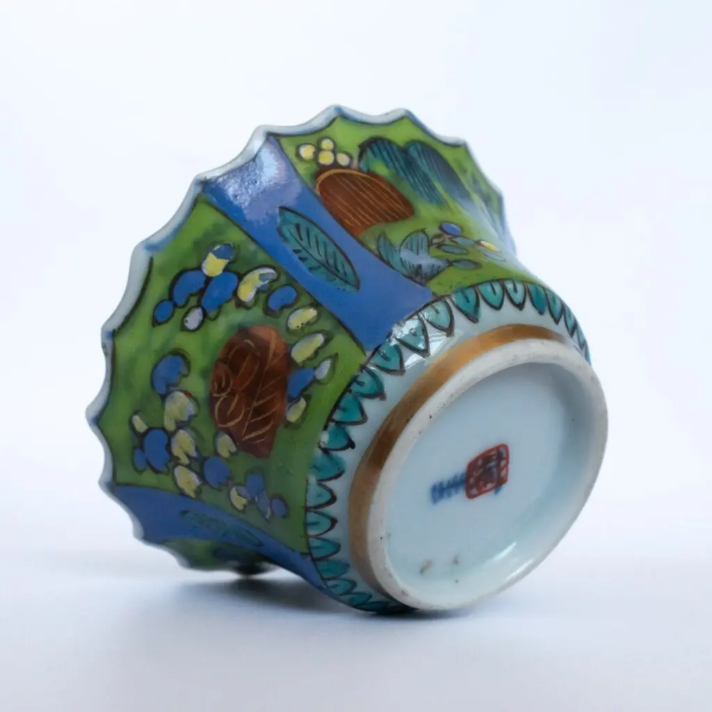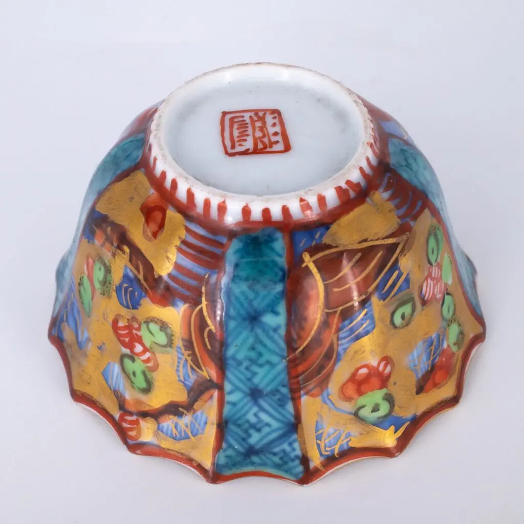 Some pieces of clobber ware – such as this 18th century tea bowl – were marked with nonsensical pseudo-Chinese iron red marks. You can find more examples of these on our Chinese porcelain marks identification page HERE.